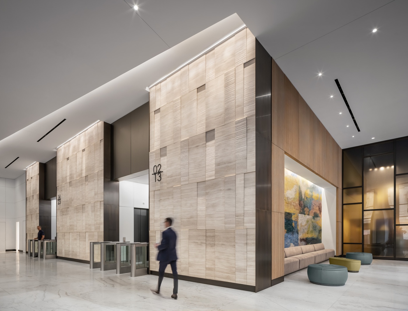 Throughout construction, the lobby remained operational, and elevators were accessible to the tenant population.
