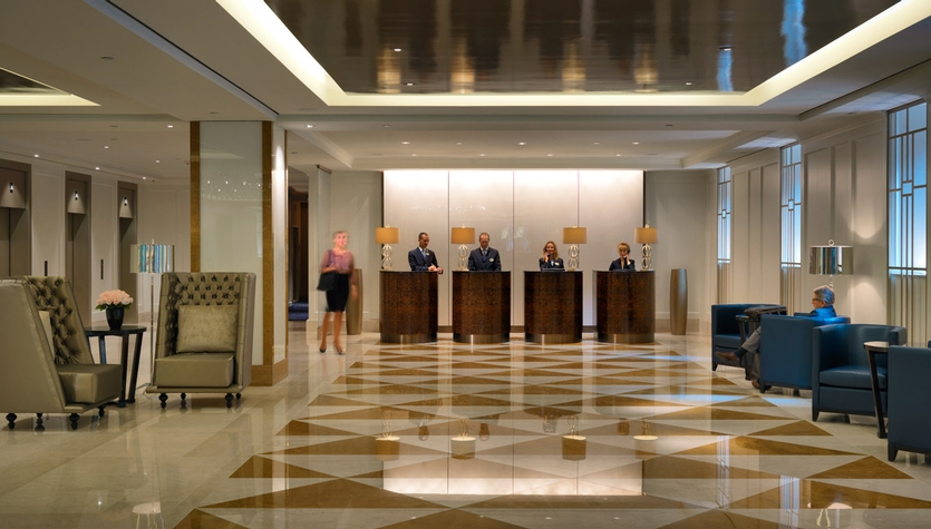 The luxurious 11,000 sf area features intricate details, including millwork, specialty wall coverings and light fixtures, as well as marble and tile flooring. The building, which originally served as the home of the Federal Reserve Bank, was renovated to give the hotel a more modern appearance.