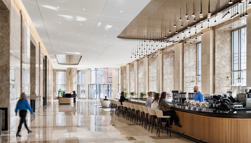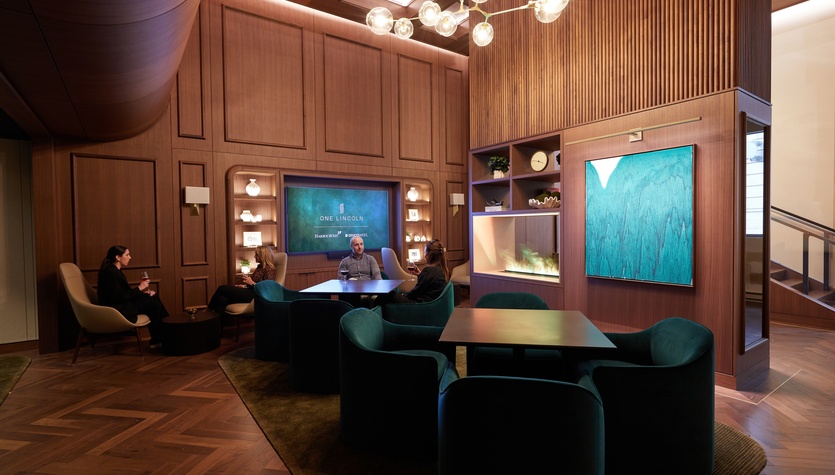 Located in downtown Boston, One Lincoln is a 36-story skyscraper featuring premier Class A office space. The building repositioning project featrured a series of overlapping phased renovations enhancing the building’s main lobby and adding several luxurious amenity spaces for tenants.